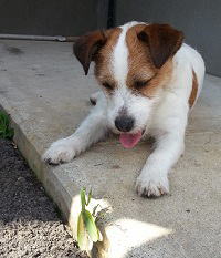 突然やってきた野良ネコにおちょくられるPス。狩猟犬と聞いたことがありますが、大したことはない。